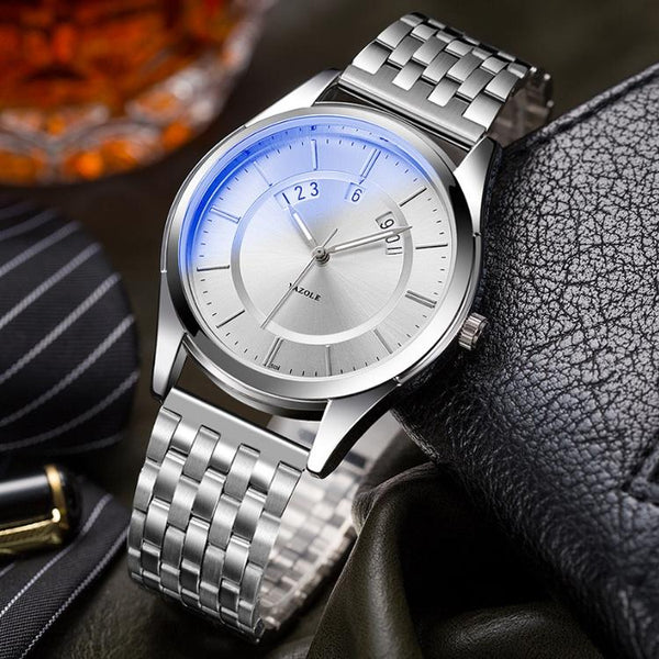 YAZOLE 513 Steel Band Calendar Waterproof Quartz Watch(Silver Dial)