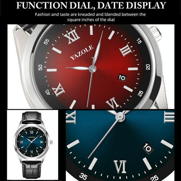 YAZOLE 552 Luminous Pointer Calendar Waterproof Quartz Watch(Number+Blue+Black)