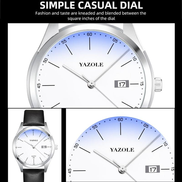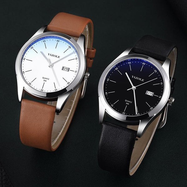 YAZOLE 560 Leather Strap Quartz Movement Waterproof Men Watch(Black+Brown)