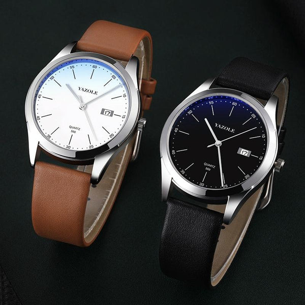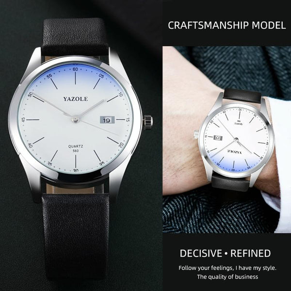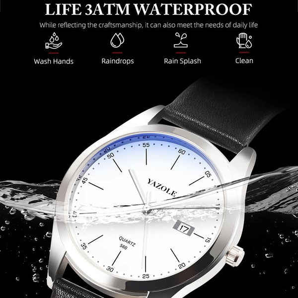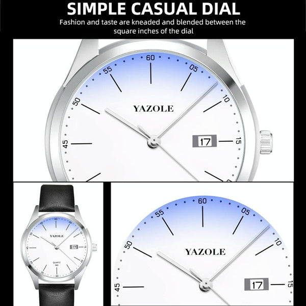 YAZOLE 560 Leather Strap Quartz Movement Waterproof Men Watch(White+Black)