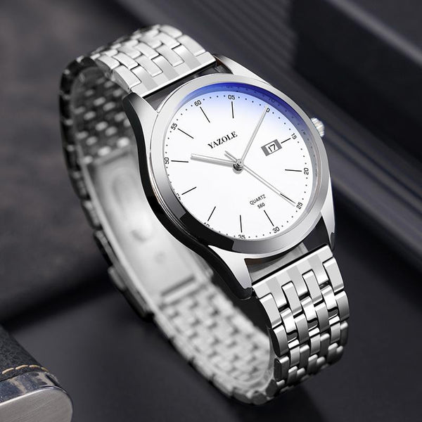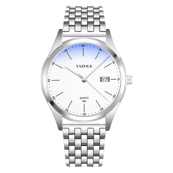 YAZOLE 560 Stainless Steel Band Quartz Movement Waterproof Men Watch(White Dial)