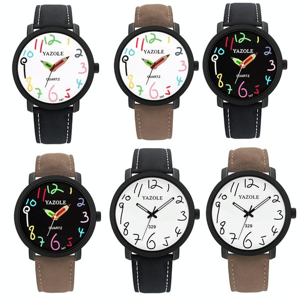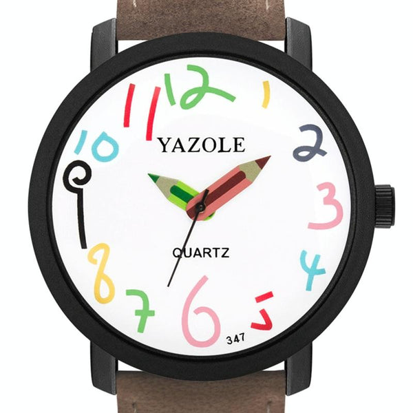 YAZOLE Personality Arabic Numeral Dial Student Watch Quartz Children Watch(347 White Tray Brown Belt)