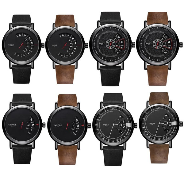 YAZOLE Turntable Men Quartz Watch(511 Black Tray Brown Belt)