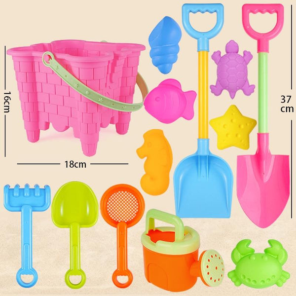 13pcs/Set Children Beach Toys Set Large Sand Shovel Bucket Sand Digging Tools Hourglass, Color: Pink Square Castle