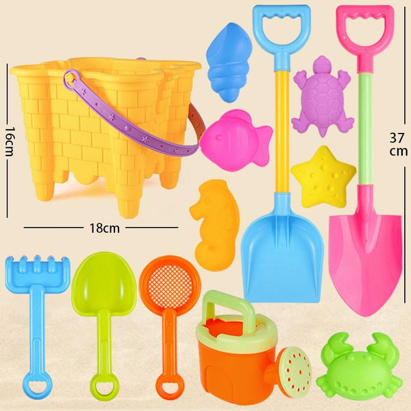 13pcs/Set Children Beach Toys Set Large Sand Shovel Bucket Sand Digging Tools Hourglass, Color: Yellow Square Castle