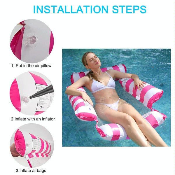 4-tube PVC Inflatable Foldable Floating Row Summer Swimming Pool Water Hammock(Straight Striped Rose Red)