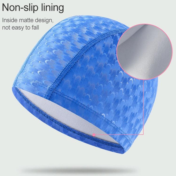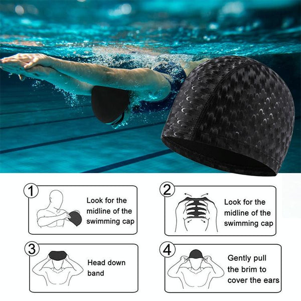 3. Professional PU swimming cap, high elastic skin, long hair available