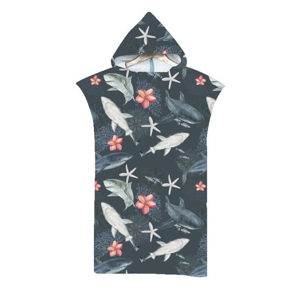 Adult Hooded Bath Towel Fine Fiber Beach Quick Dry Bathrobe, Size: 110x75cm(Black Group Shark)