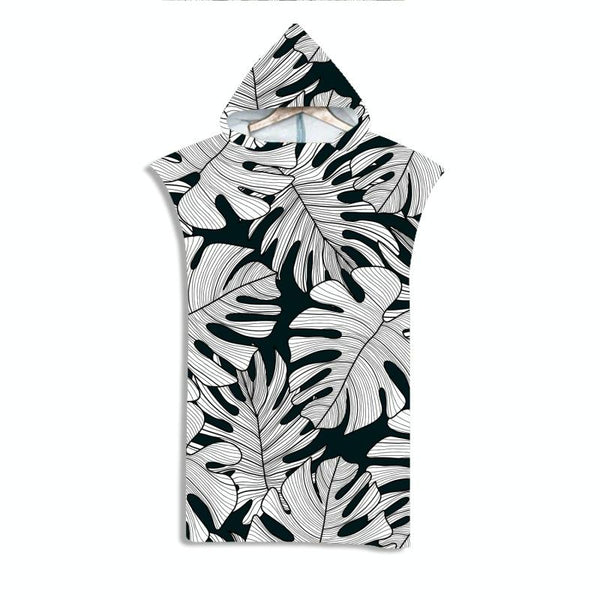 Adult Hooded Bath Towel Fine Fiber Beach Quick Dry Bathrobe, Size: 110x75cm(Black Leaf)