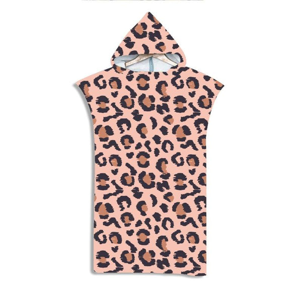 Adult Hooded Bath Towel Fine Fiber Beach Quick Dry Bathrobe, Size: 110x75cm(Pink Leopard Print)