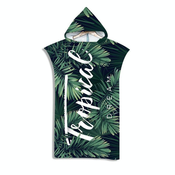 Adult Hooded Bath Towel Fine Fiber Beach Quick Dry Bathrobe, Size: 110x75cm(Tropical Leaf)