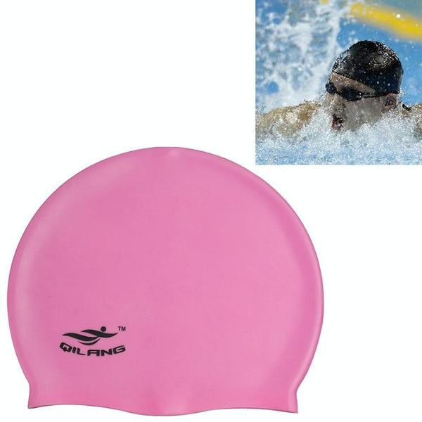 Adult Solid Color Waterproof Silicone Swimming Cap(Pink)