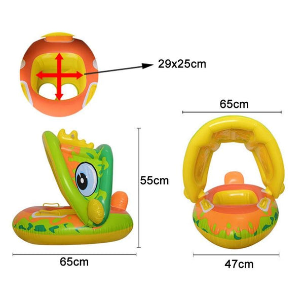 Baby Cartoon Animal Swimming Ring With Awning(Purple)