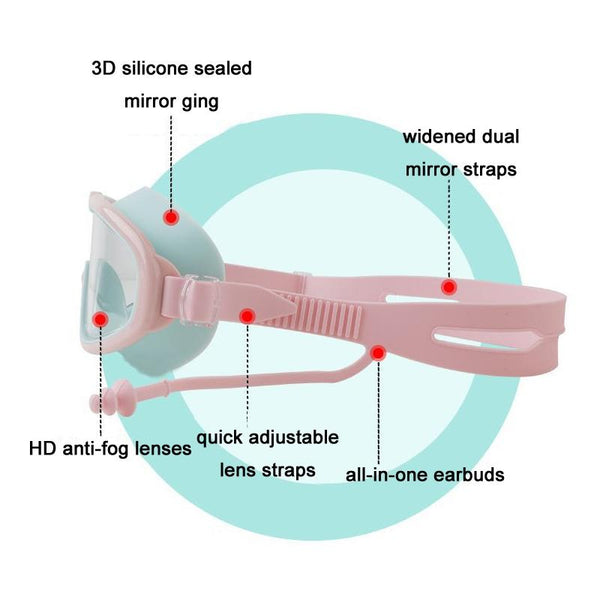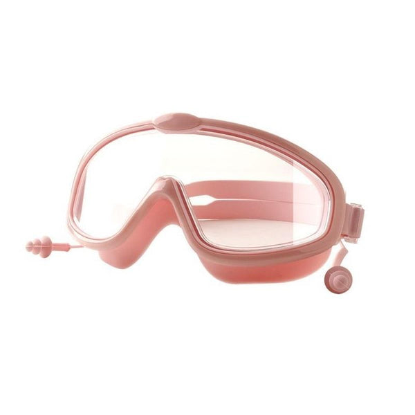 Children Anti-fog Large Frame Swimming Goggles With Conjoined Earplugs(Pink)