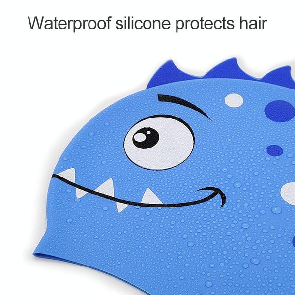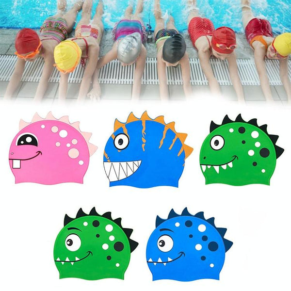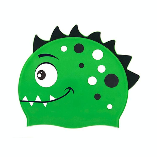 Children Cartoon Dinosaur Comfortable Silicone Swimming Cap(Green1)