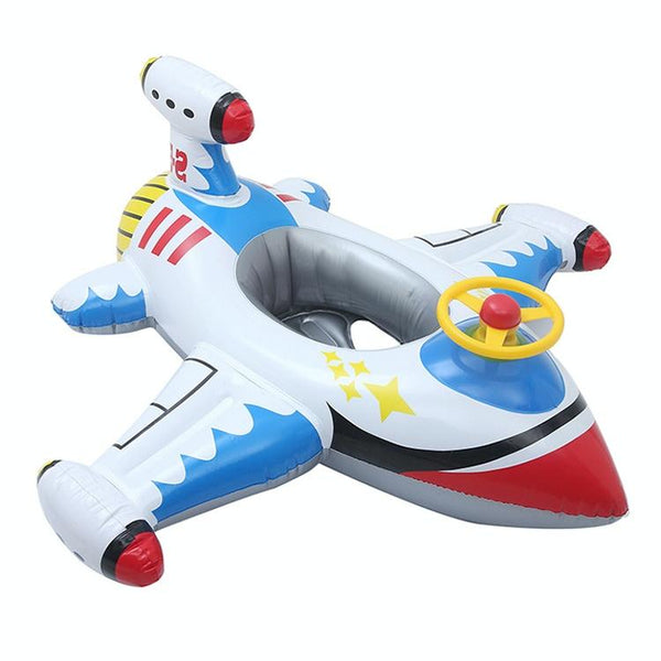 Children Thickened Inflatable Airplane Shape Seat Mount Swimming Ring(White)