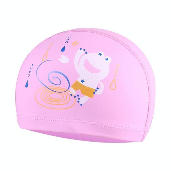 Children Waterproof Hair Care PU Coated Cute Frog Pattern Swimming Cap(Pink)