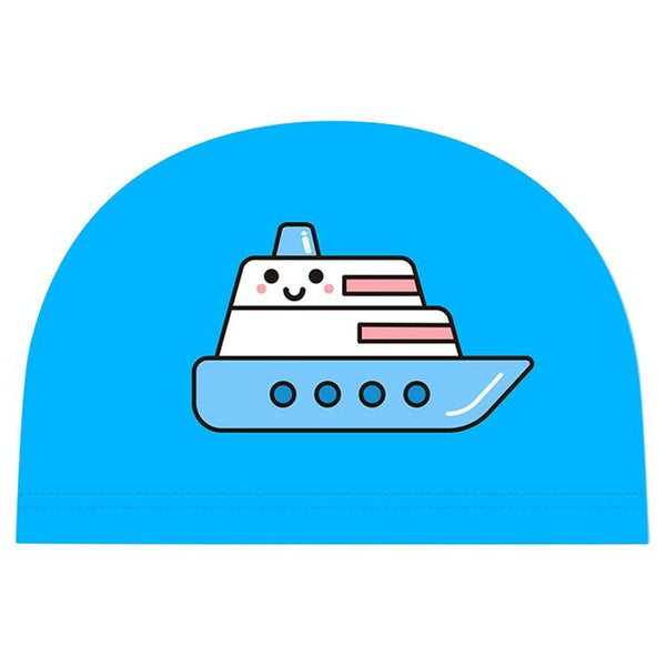 Children Waterproof PU Coated Breathable Sunscreen Swimming Cap(Blue Sailboat)