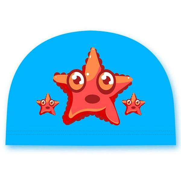 Children Waterproof PU Coated Breathable Sunscreen Swimming Cap(Blue Starfish)