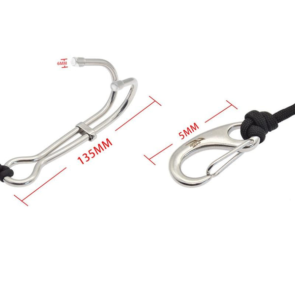 7. Specifications: double-stream hook 135mm, wire diameter 6mm, egg-shaped buckle 50mm, unfolded total length 1.24 meters