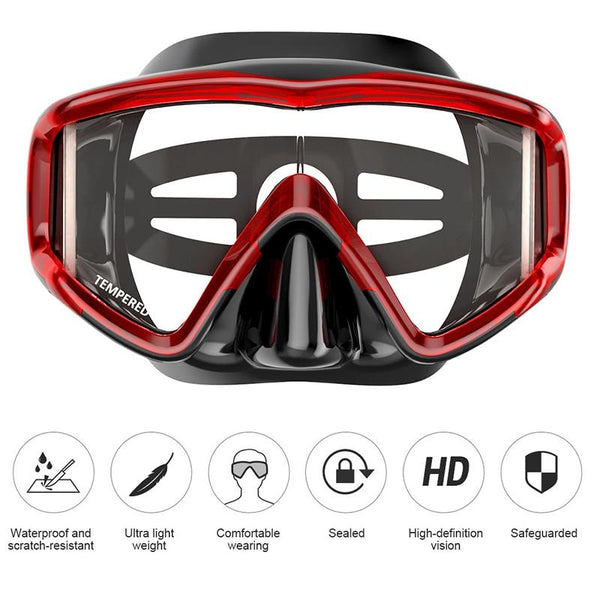 DM600 Silica Gel Diving Mask Swimming Goggles Diving Equipment for Adults (Red + Black)