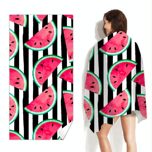 Double-Faced Velvet Quick-Drying Beach Towel Printed Microfiber Beach Swimming Towel, Size: 160 x 80cm(Passionate Watermelon)
