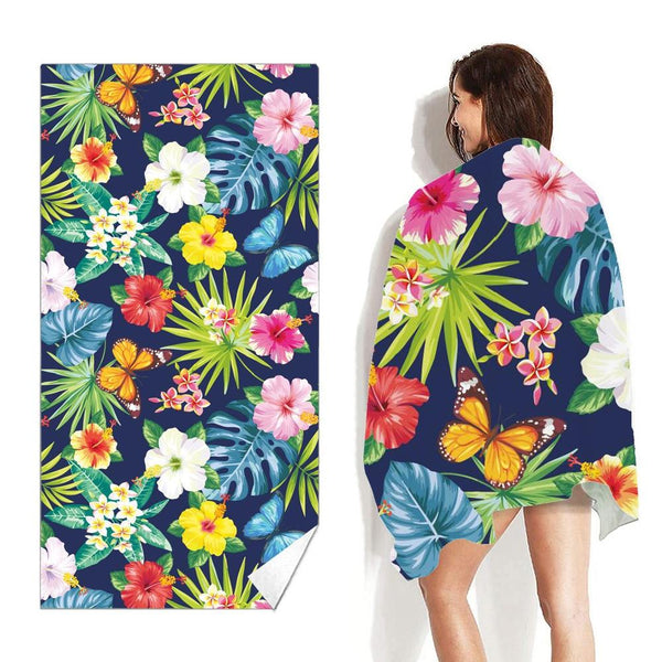 Double-Faced Velvet Quick-Drying Beach Towel Printed Microfiber Beach Swimming Towel, Size: 160 x 80cm(Tropical Flower)