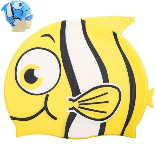 Ear Protection Small Fish Pattern Diving Cap Children Silicone Swimming Cap(F)