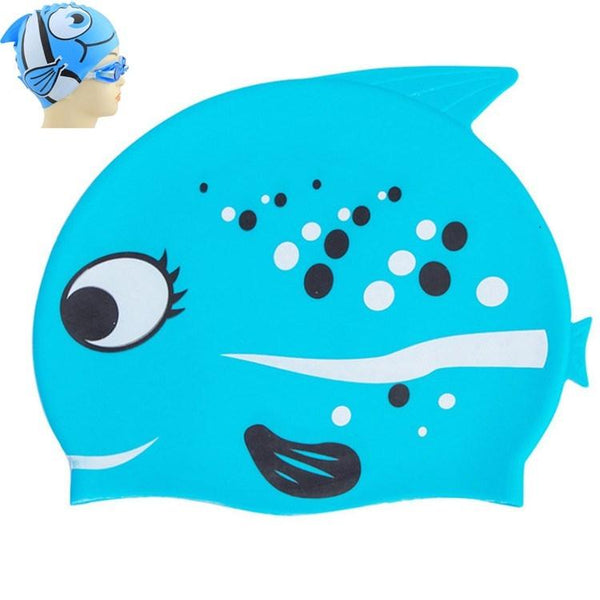 Ear Protection Small Fish Pattern Diving Cap Children Silicone Swimming Cap(K)