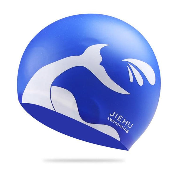 Enlarged Version Dolphin Pattern Silicone Swimming Cap for Male and Female(Blue)