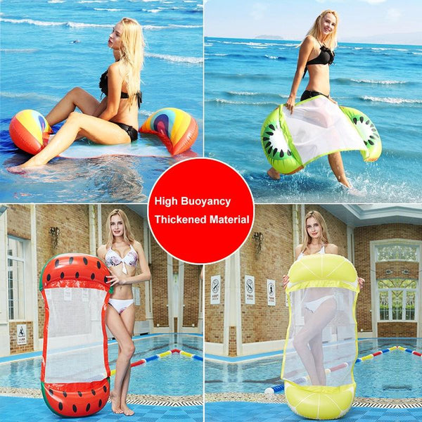 Fruit Style Inflatable Floating Row Hammock Pool Lounge Chair with Backrest, Color: Kiwi