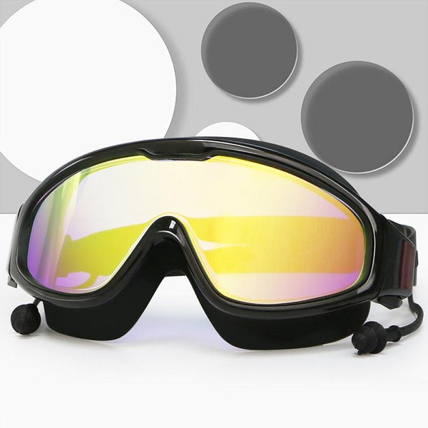 HAIZID Large Frame Waterproof Anti-Fog Swimming Goggles With Earplugs(Black)
