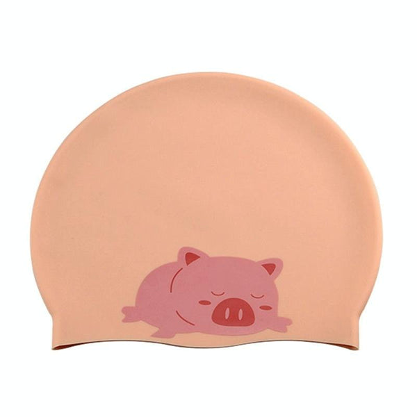 Hy08 Cute Cartoon Print Silicone Swimming Cap, Spec: Pink Pig