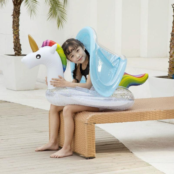 Inflatable Children Swimming Ring with Sunshade Floating Seat( Unicorn)