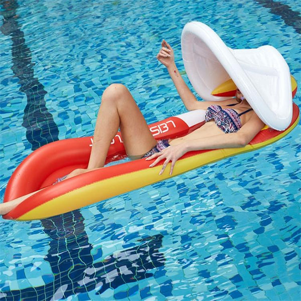 Inflatable Sunshade Water Floating Bed PVC Foldable Recliner with Removable Awning, Size:160 x 90cm(Red)