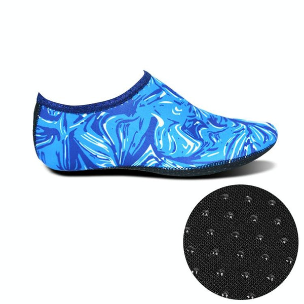 Non-slip Plastic Grain Texture Thick Cloth Sole Printing Diving Shoes and Socks, One Pair(Blue Figured)