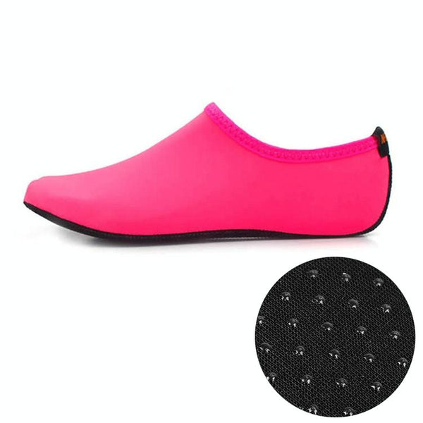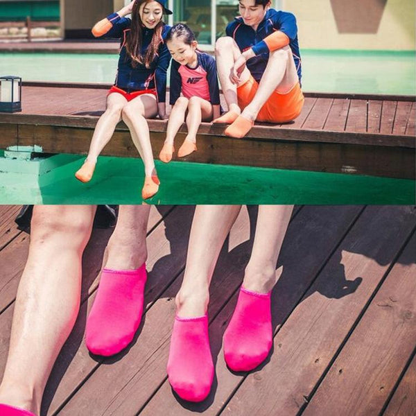 Non-slip Plastic Grain Texture Thick Cloth Sole Solid Color Diving Shoes and Socks, One Pair(Rose Red)