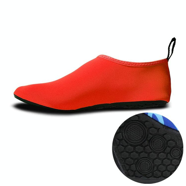 Non-slip Wear-resisting Thick Rubber Sole Diving Shoes and Socks, One Pair(Red)