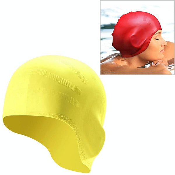 Silicone Ear Protection Waterproof Swimming Cap for Adults with Long Hair(Yellow)