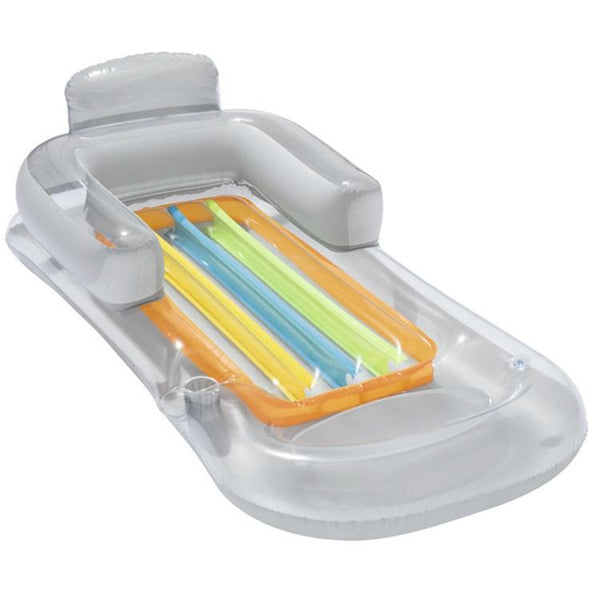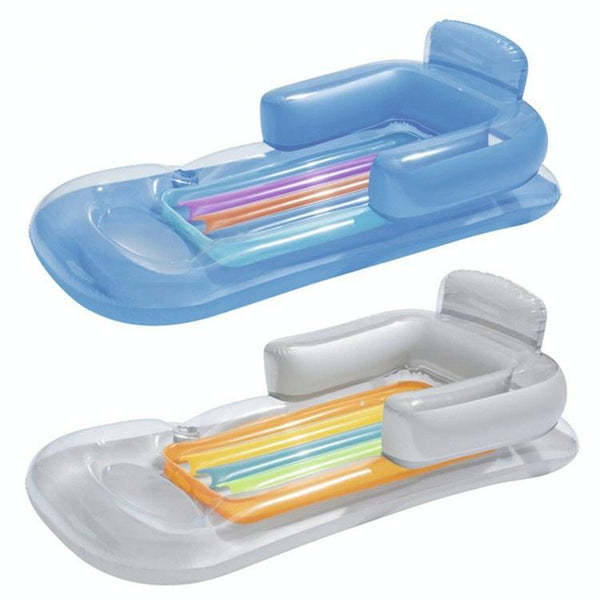 Single Water Inflatable Bed Back Luxury Chair Adult Inflatable Floating Row with Armrest & Cup Hole, Size:161 x 84cm(Transparent)