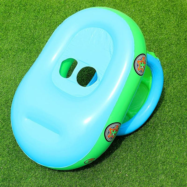 Sunshade and Sunscreen Baby Swimming Ring Car Boat Shape Inflatable Swimming Ring with Horn(Light Blue + Green)