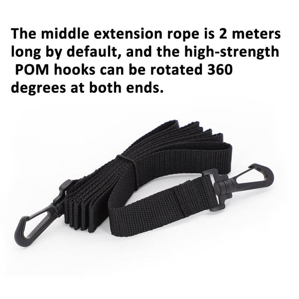 5. The middle extension rope is 2 meters long by default, and the high-strength POM hooks can be rotated 360 degrees at both ends.