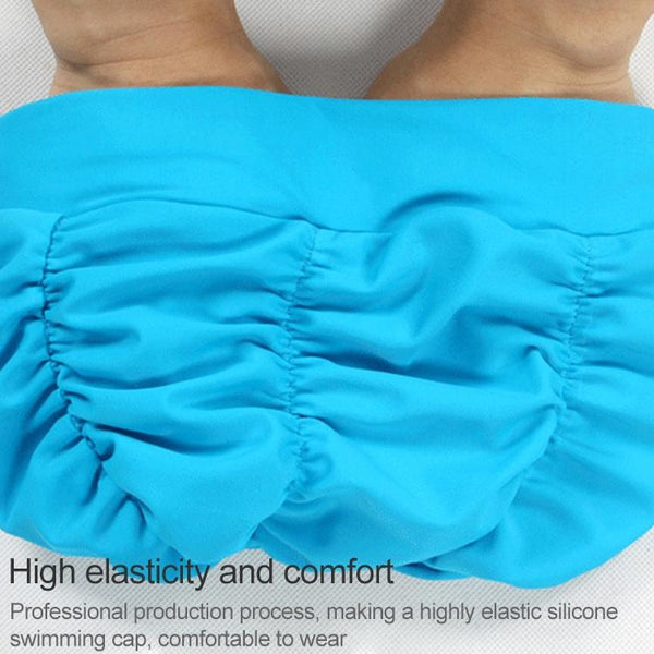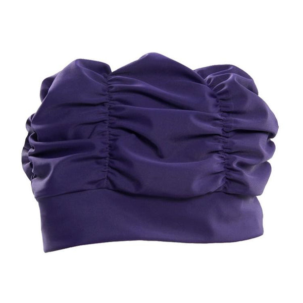 Women Earmuffs Pleated Cloth Swimming Cap(Purple)