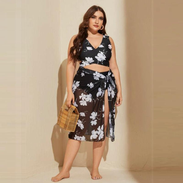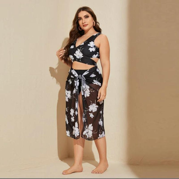 3 in 1 Set Sexy Plus Size Print Bikini Ladies Split Swimsuit, Size:XXXL(As Show)