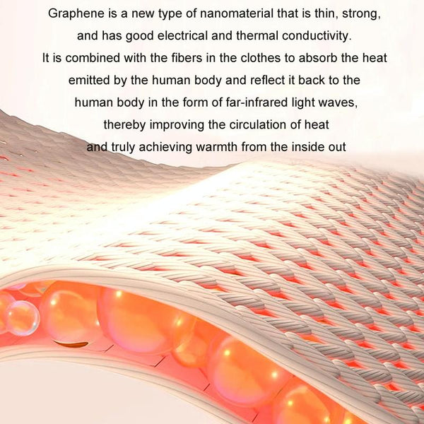 3. Graphene is a new type of nanomaterial that is thin, strong, and has good electrical and thermal conductivity. It is combined with the fibers in the clothes to absorb the heat emitted by the human body, and at the same time reflects it back to the human body in the form of far-infrared light waves, improving the circulation of heat and truly achieving warmth from the inside out