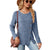 Autumn And Winter Round Neck Button Split Loose Long-Sleeved T-Shirt Top, Size: S(Blue)