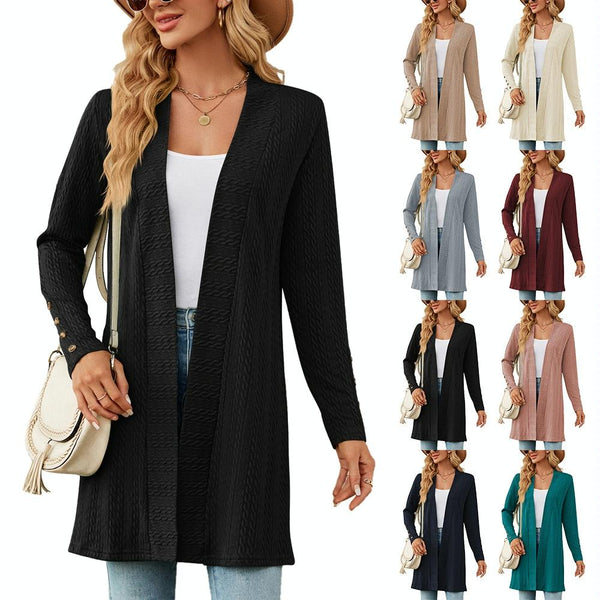 Autumn And Winter Women Button Long Sleeve Loose Cardigan Jacket, Size: XXL(Gray Blue)