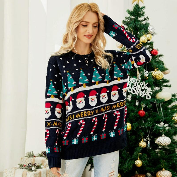Autumn And Winter Women Pullover Sweater Christmas Tree Knit Sweater, Size: L(Dark Blue)
