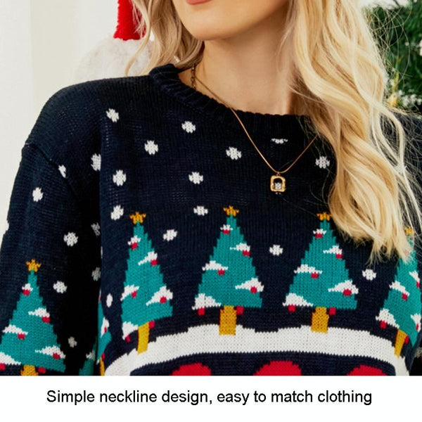 Autumn And Winter Women Pullover Sweater Christmas Tree Knit Sweater, Size: S(Dark Blue)