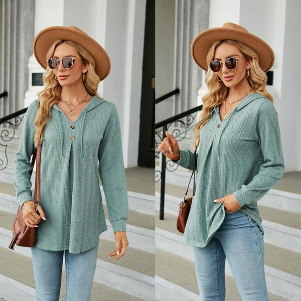 Autumn Winter V-Neck Loose Long Sleeve Hooded Sweatshirt Women Outerwear, Size: XXL(Dark Green)